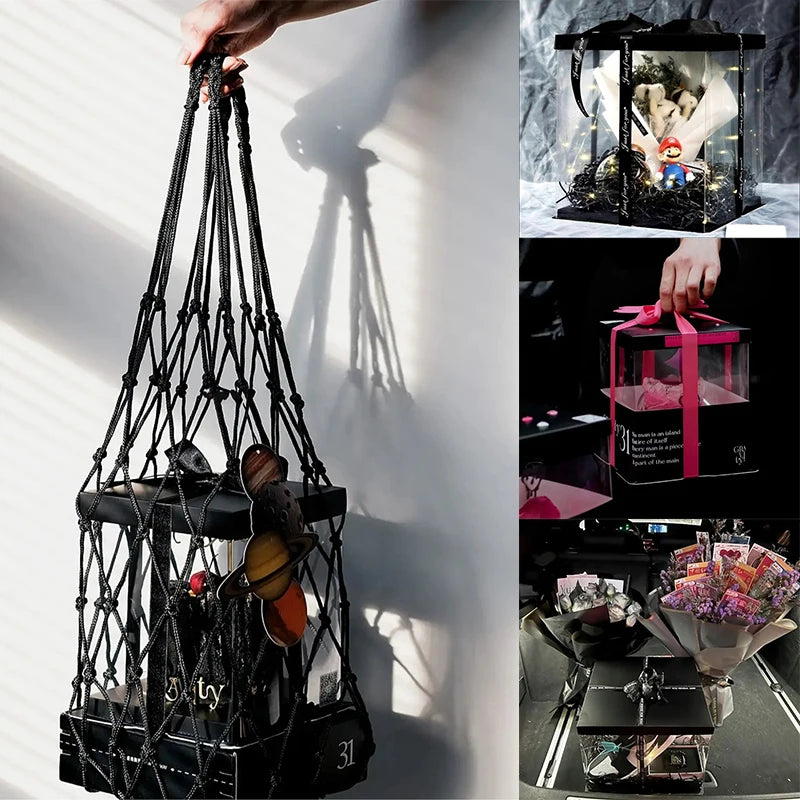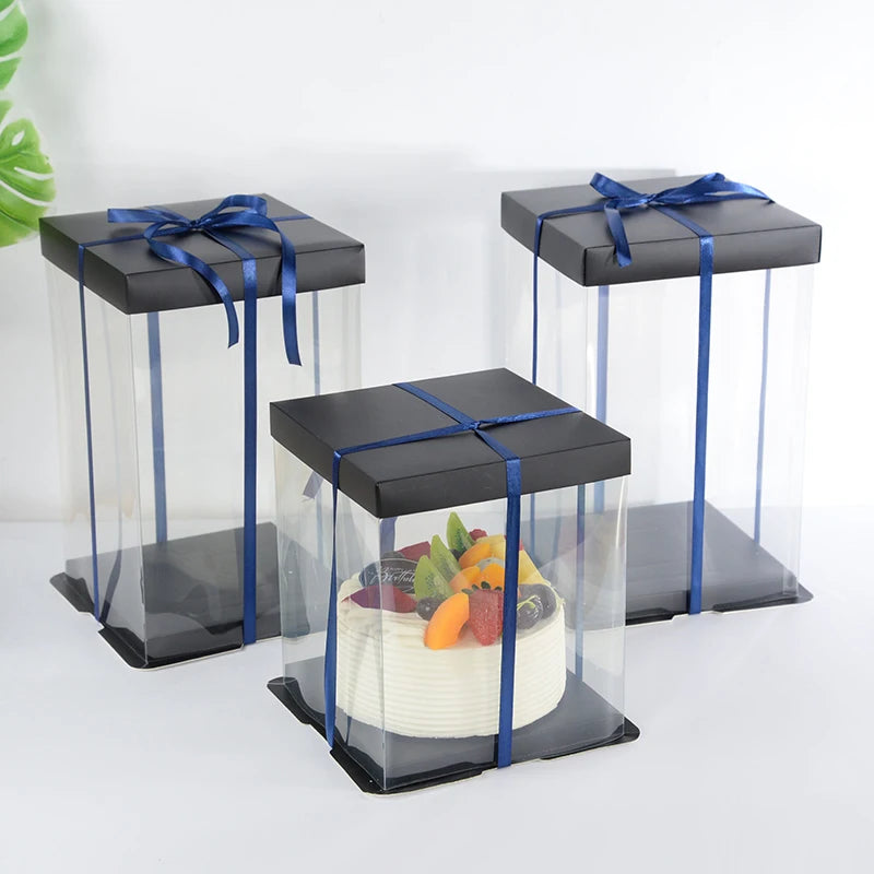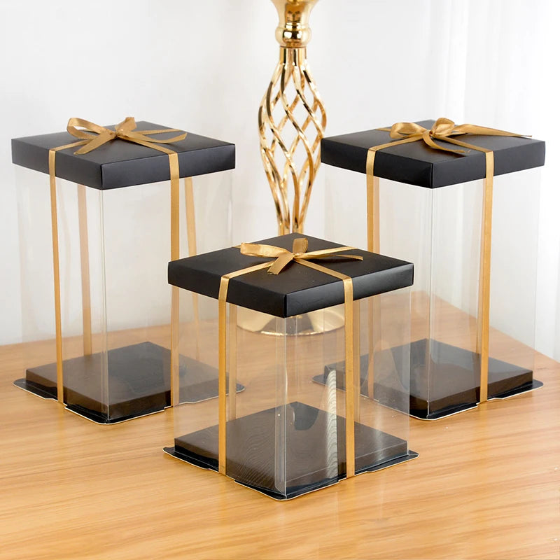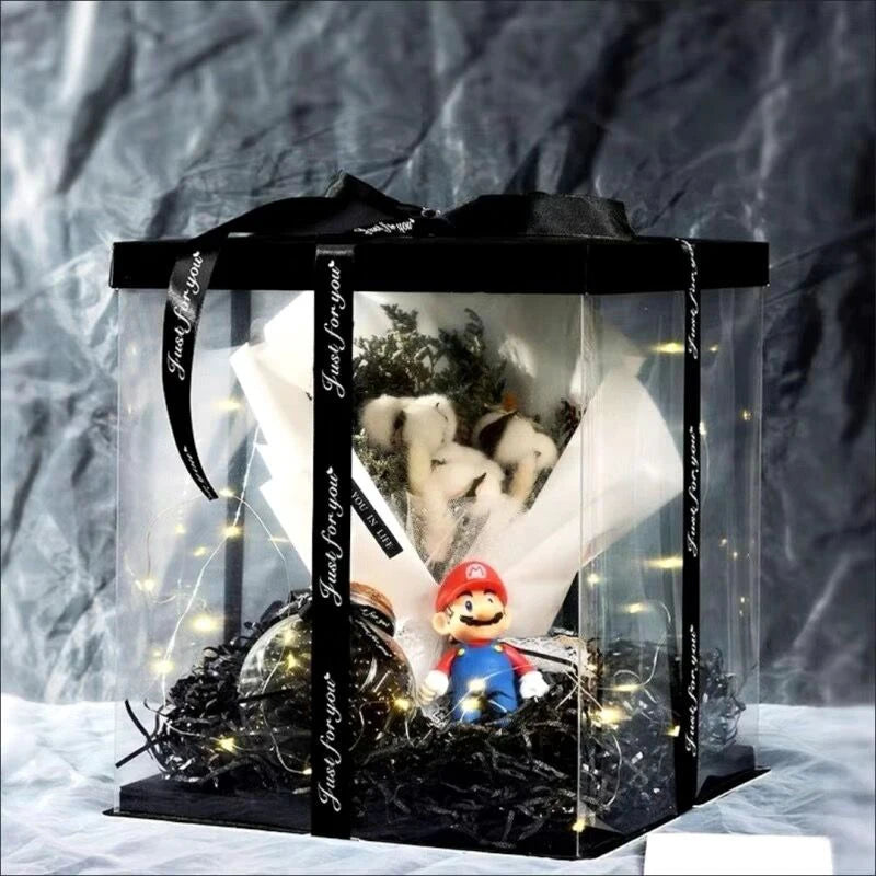 Clear Gift Box PVC Transparent Rose Flower Bear Gift Cake Package Box Wedding Birthday Christmas Present Dessert Decoration Case